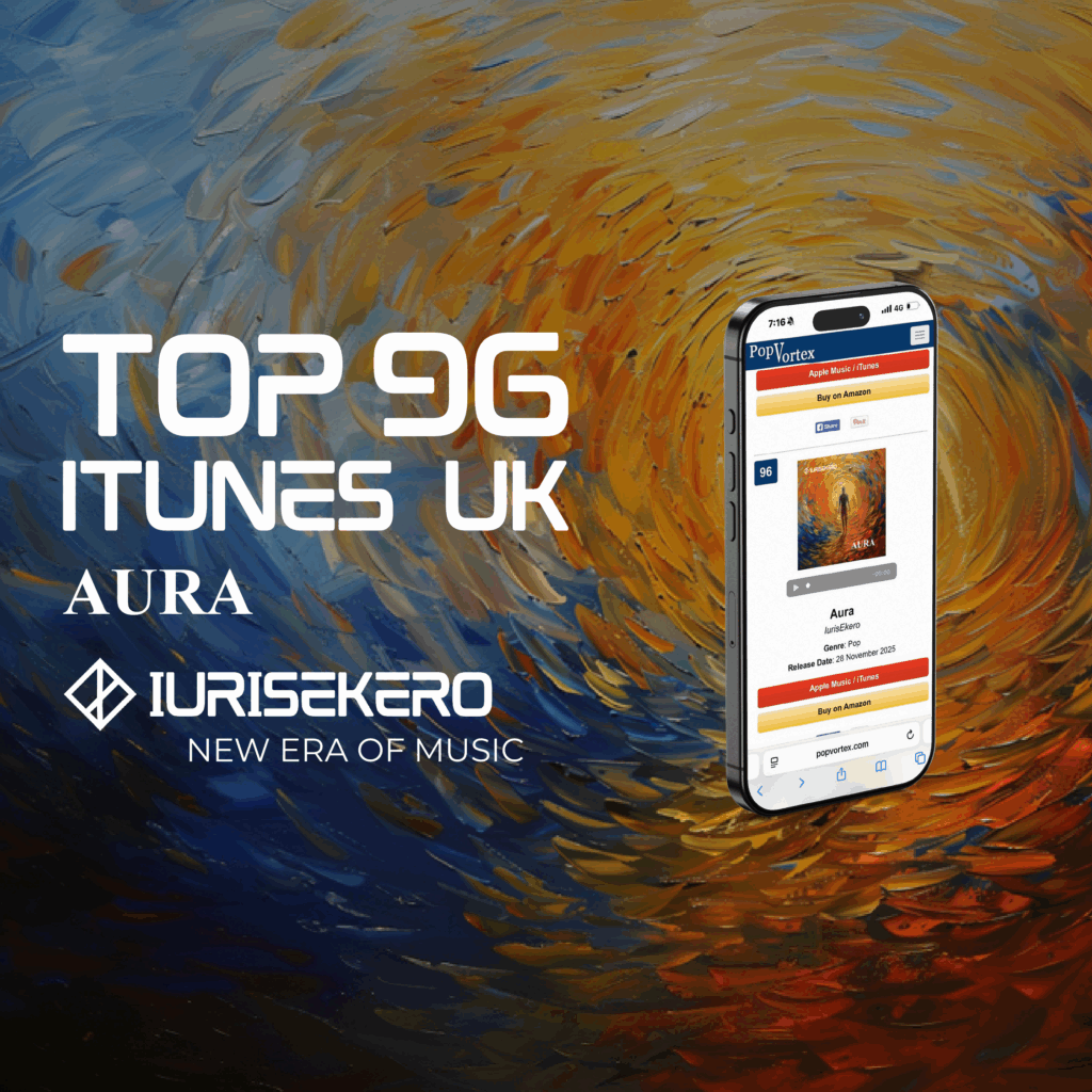 IurisEkero reaches the iTunes UK charts with Aura, achieving Top 96 as an independent project. This milestone reflects the growing international impact of a music proposal built around emotion, technology, and creative exploration. Thank you